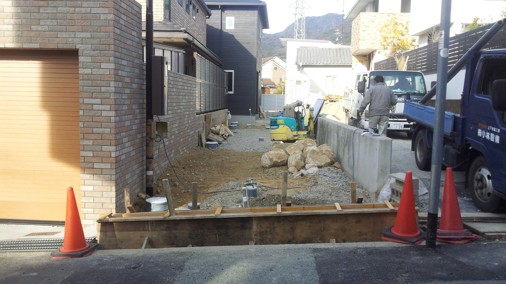 洗い出し、緑化ブロック、門柱ブロック(ジョリパット)他、外構一式終わりました、工期ギリギリまでかかりましたが、何とか終わって一安心です、 着工中(before写真とりわすれ) After アプローチ 洗い出し 2016年2月27日(土) 21:58 | カテゴリー:施工事例